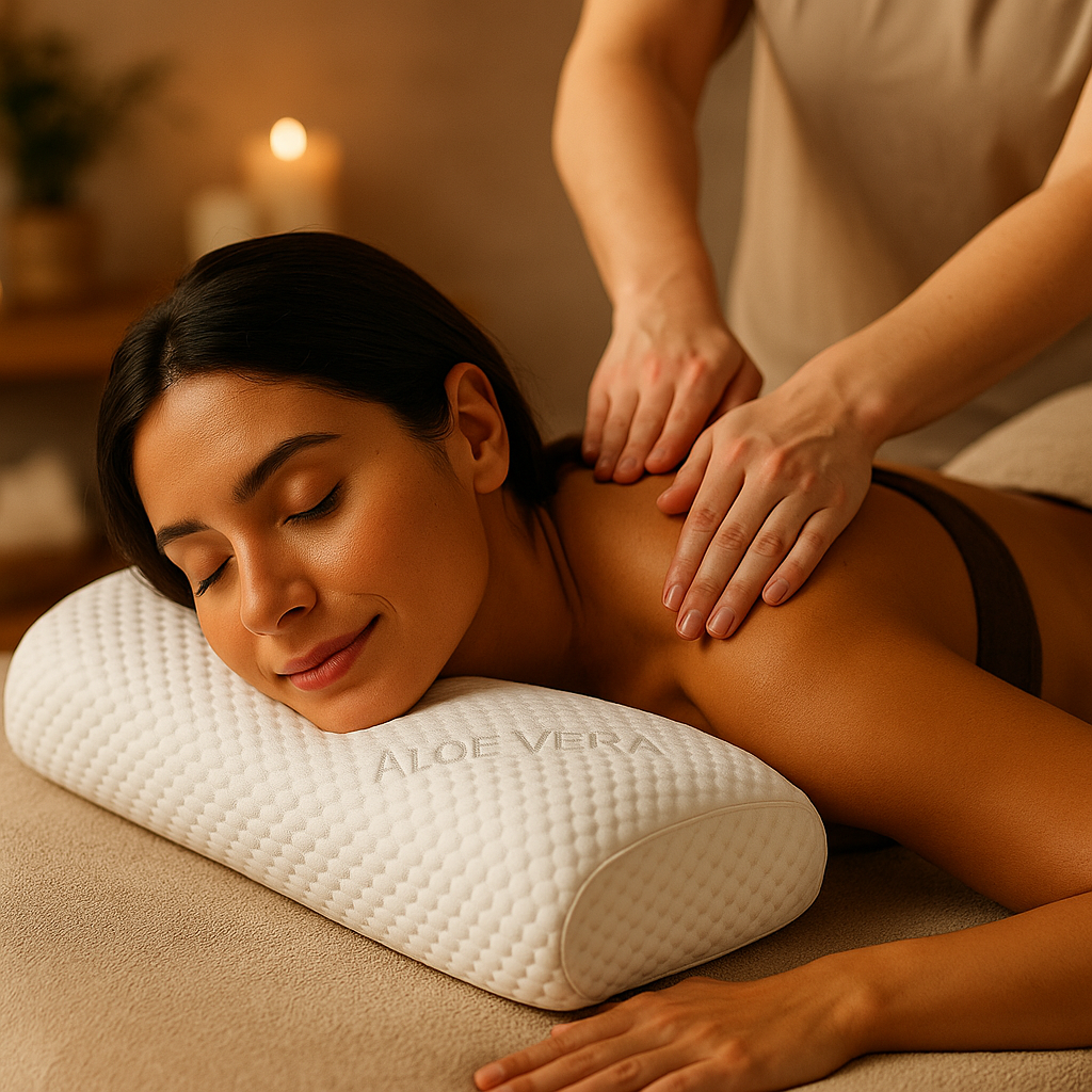 Descubra a almohada ergonômica 3D com Aloe Vera , projetada especialmente para oferecer um apoio ideal durante sessões de massagens, terapias e relaxamento . Sua estrutura indeformável e ergonômica garante comodidade e bem-estar em cada uso.